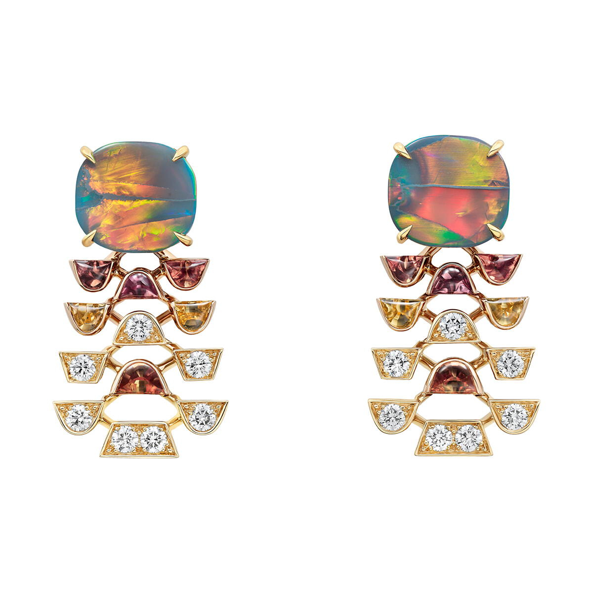 イヤリングの素材はピンクゴールド、イエローゴールド、オパール、サファイア、ダイヤモンド。¥73,920,000(参考価格)Mathias De Lattre © Cartier