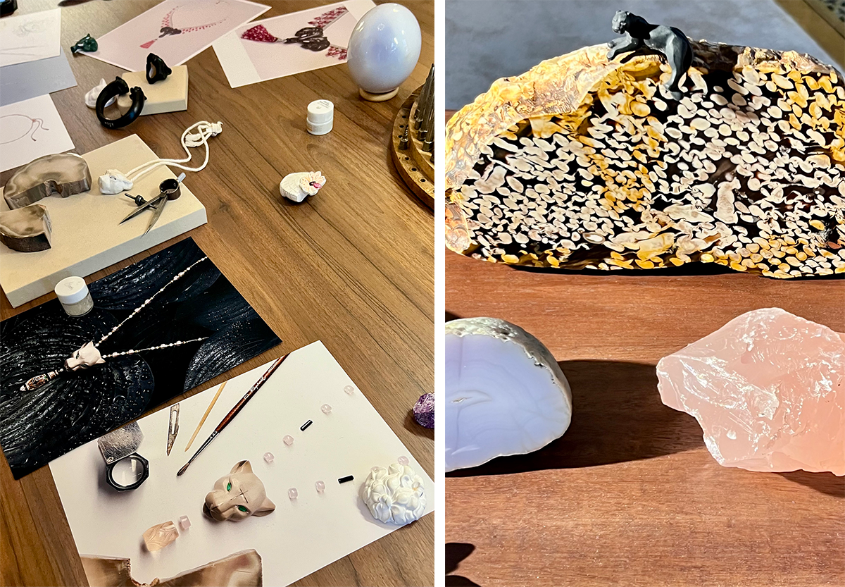 発表会場の一角に、カルティエが護る希少な職人技であるグリプティックについて解説するコーナーが設けられていた。カルティエは石や骨などの素材を彫るグリプティックのインハウス・アトリエをもつ世界で唯一のジュエラーである。photography: Mariko Omura