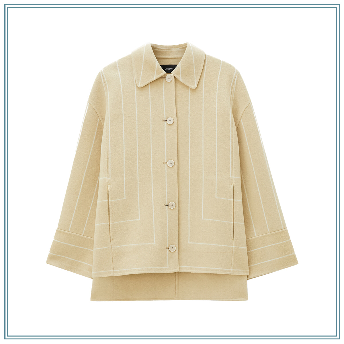 レイヤードも楽しめるリラックスシルエットのコートに、装いにリズムを添えてくれる控えめな幾何学柄をオン。ウールとシルクをブレンドした上質な肌ざわりを堪能して。