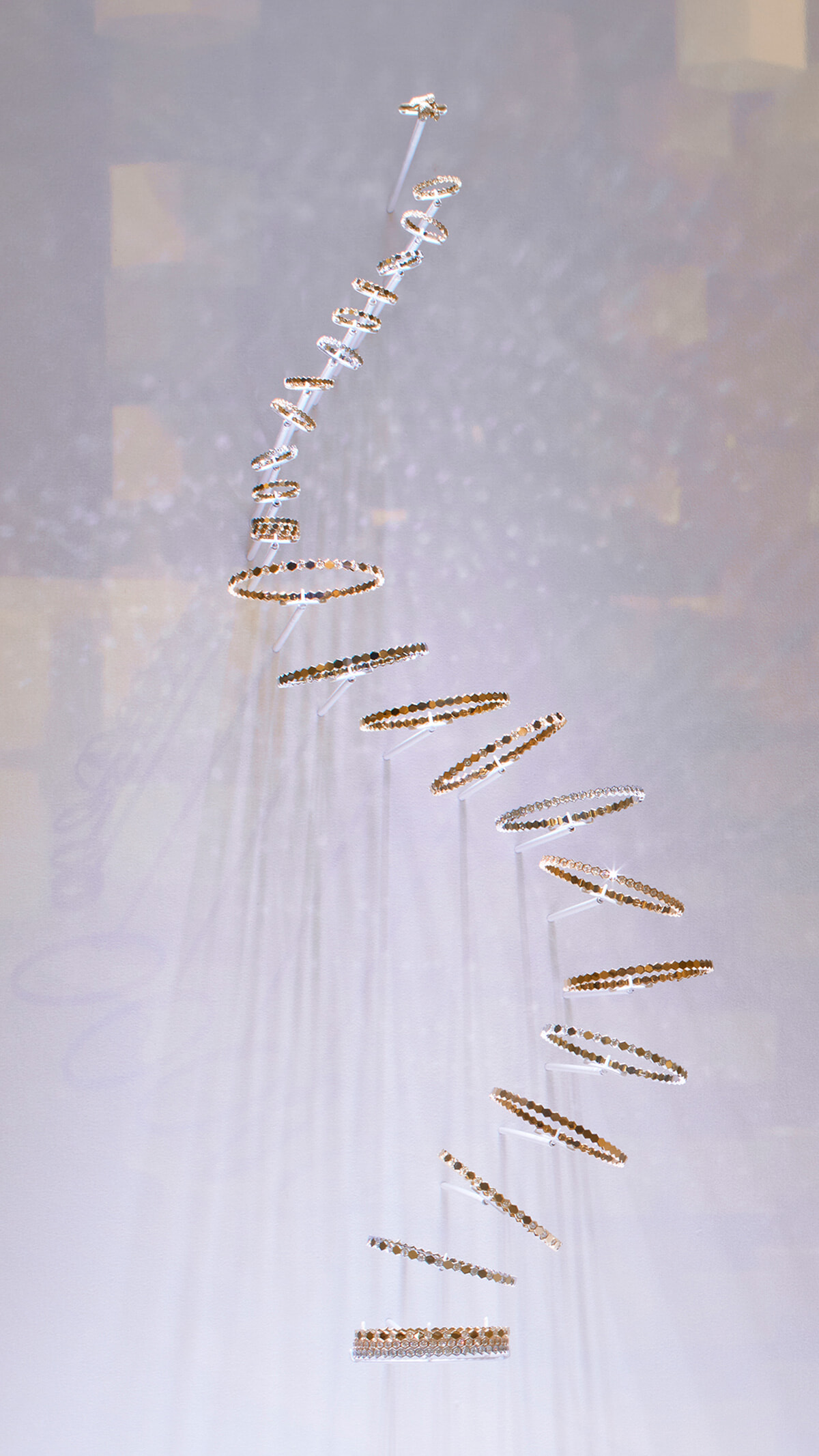 ハニカムをモチーフにした「ビー ドゥ ショーメ」のリングとブレスレットが美しく連なる。