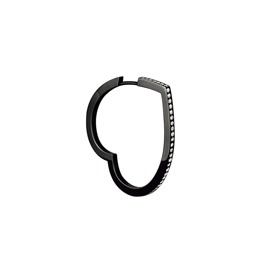 横顔にハートを描くフープのイヤリング。パヴェダイヤで縁取られた甘く繊細な煌めきが魅力的。