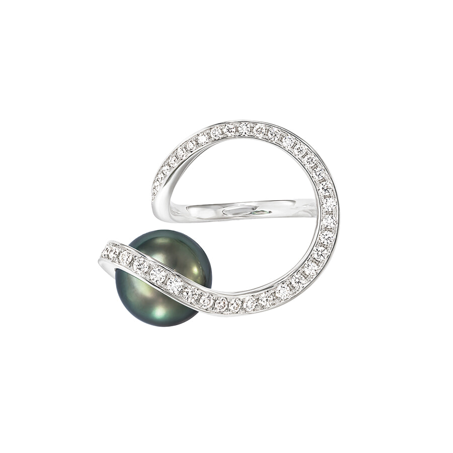 リング「オーロラ」(WG ×南洋真珠 黒蝶×ダイヤモンド)¥1,100,000/タサキ