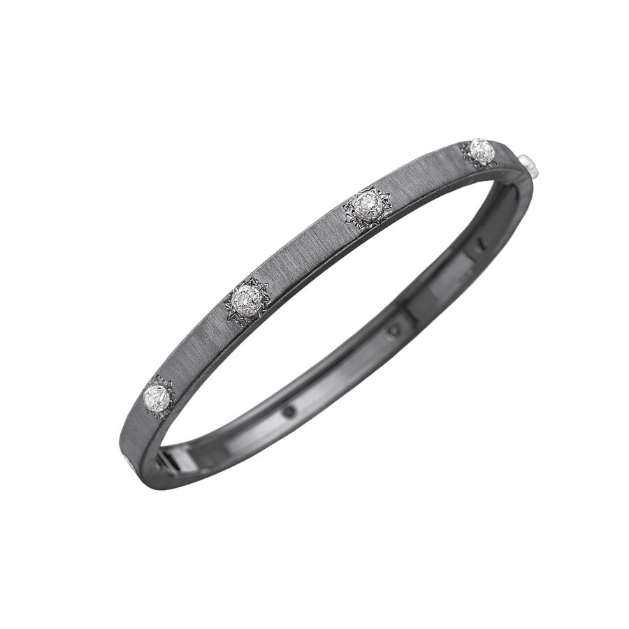 ホワイトゴールドを黒くコーティングし、”リガート”技法で細かな線が手彫りされた職人技が目を引くブレスレット。小さな星型にはダイヤをセッティング。