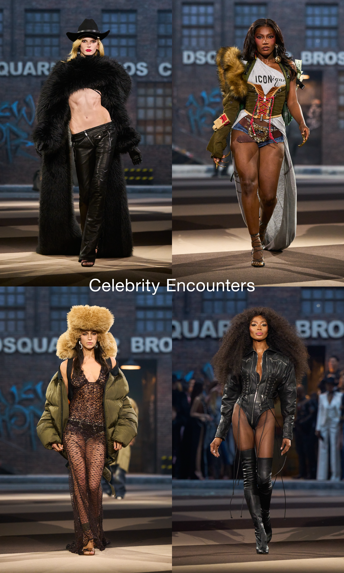 ケイティン兄弟は語る。「この記念すべき年に、過去30年間ブランドを形づくったすべてを称えたいと考えました。大胆なコントラスト、型破りな姿勢、そして”自分らしくある”自由を表現するため躊躇のない自由。伝説的な2003年レディースコレクション『24/7 スター』のショーを再解釈し、ナオミ・キャンベルがランウェイを歩いたあの瞬間を、ラップ界の新星ドーチー(DOECHII)で再現し、いまなお語り継がれているアイコニック・スケートブーツなど、シグネチャーアイテムも復活させました。このコレクションは過去と現在を結びつけ、未来を見据えるもの。まさにディースクエアードの本質と、私たちがこの年月を通じて貫いてきた精神を映し出しています」