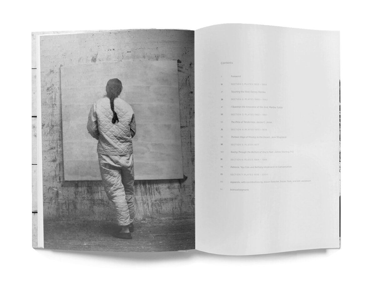 アグネス・マーティン:幾何学的な抽象画で知られる画家。正方形のキャンバスの端から端までグリッドを描き、薄いジェッソの層で仕上げる彼女の特徴的な形式は不朽のモチーフ。