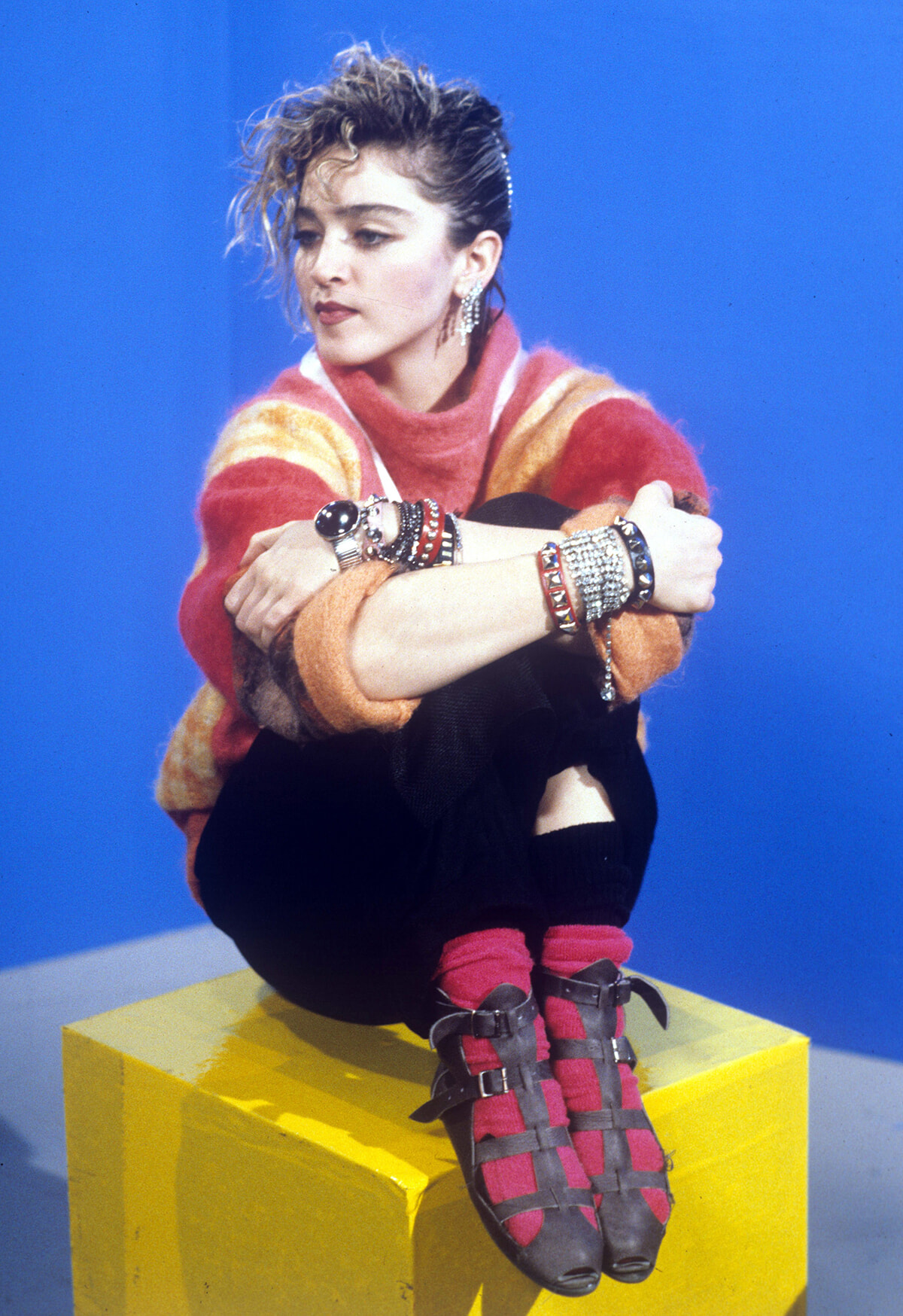 デビュー当時のマドンナのスタイルは、いまのポップスターと違ってブランドから提供された最新流行ではない。手首に重ね着けしたブレスレットも、ボロボロのジーンズに合わせたレースストッキングも、彼女自身が選んだコーディネート。映画『マドンナのスーザンを探して』(1985年)の彼女のファッションはほぼ私服である。