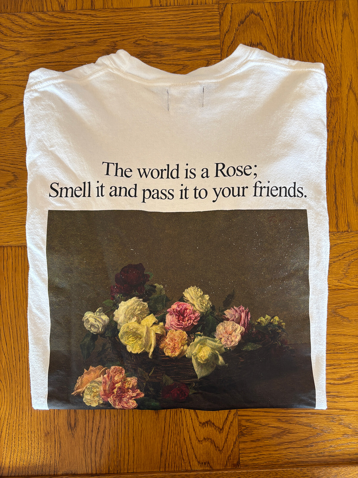 薔薇に因んだアート作品や格言が背中にプリントされています。