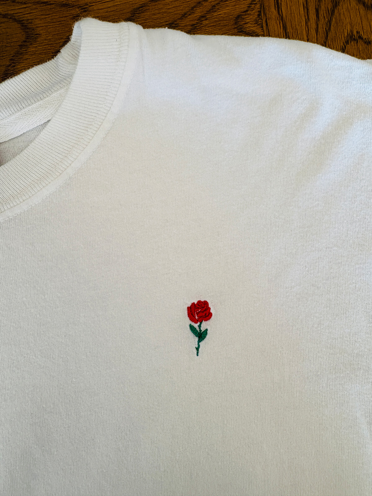 フロントの胸部分に刺繍された薔薇のワンポイントもお気に入り。