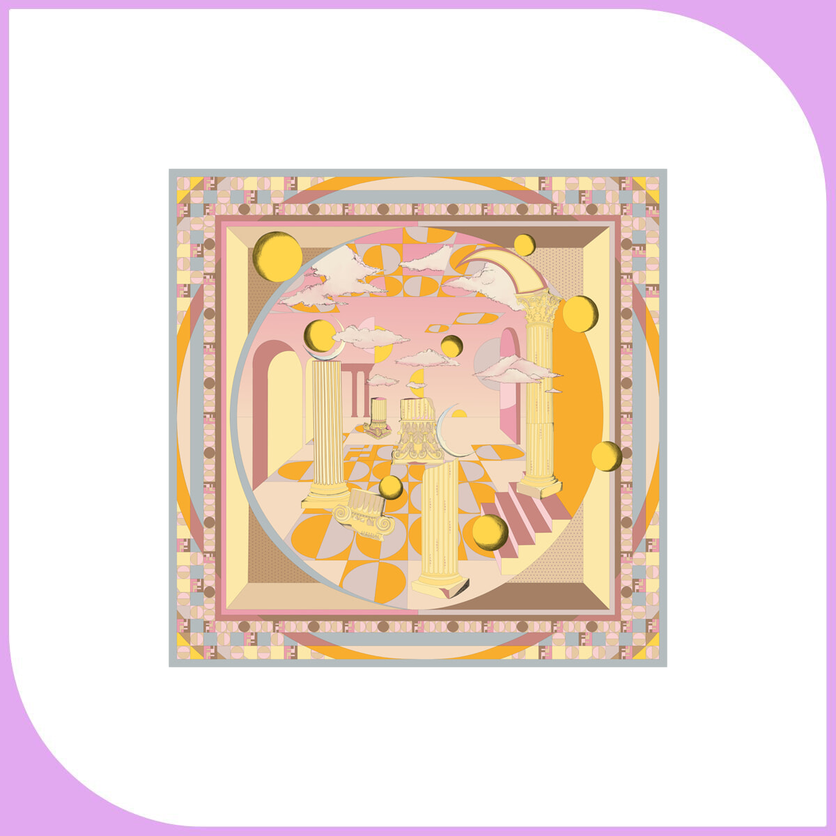 アールデコからインスパイアされたモチーフを、ピンクとイエローのグラフィックでアレンジ。周囲にフェンディ オプティカルモチーフが入ったフレームをあしらい、柔らかな色調も相まってエレガントな印象に。