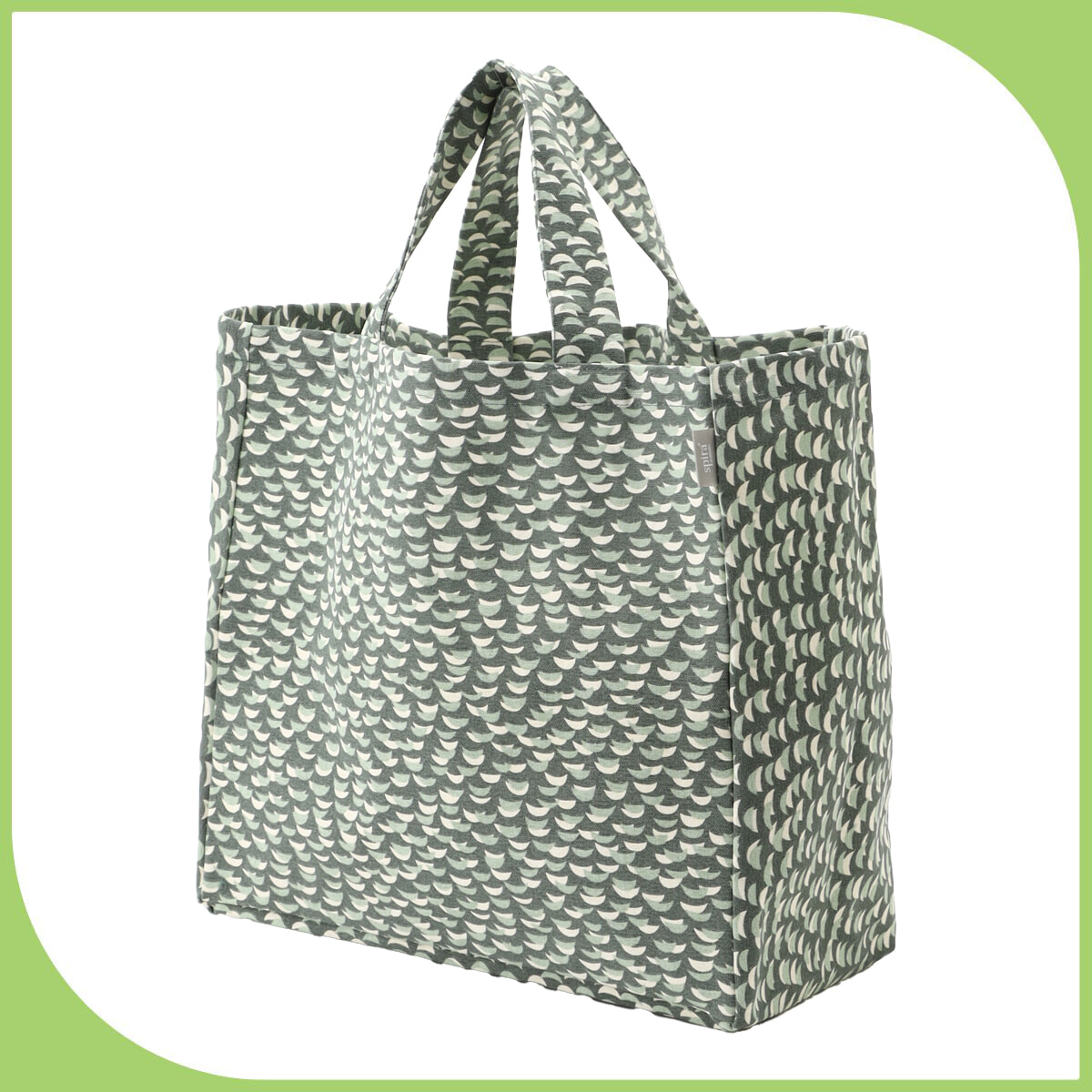スウェーデンにあるスピラ社のシンプルな柄と優しいカラーリングが特徴的なファブリックで仕立てたショッピングバッグはデイリー使いにぴったり。シンプルな構造かつ、たっぷりと荷物が入るサイズ感で旅先でも重宝しそう。