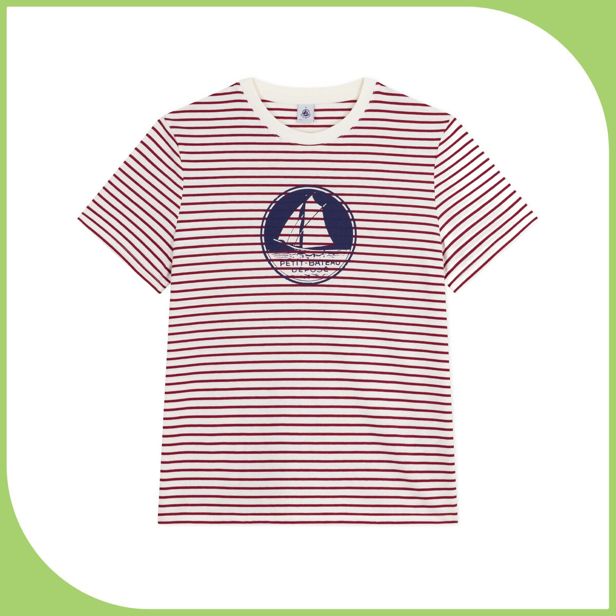 ミニマリニエールボーダーにヨットプリントをのせた、アイコニックなTシャツ。さらりとした肌触りのコットンジャージ素材で仕立てた、シーズンレスで楽しめる快適な着心地のTシャツで、装いに爽やかなアクセントを。