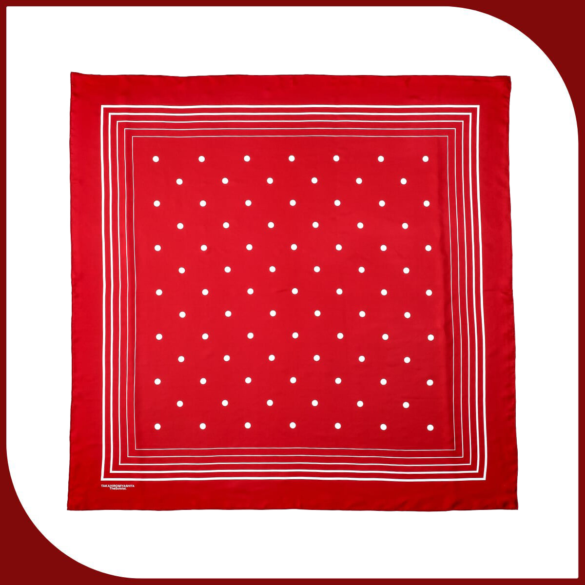 鮮やかなレッドにホワイトのドットが映える、普段のスタイルに馴染む優れもの。上品な光沢を纏うシルクツイル地を用いたシンプルなデザインのスカーフで運気をプラスして。