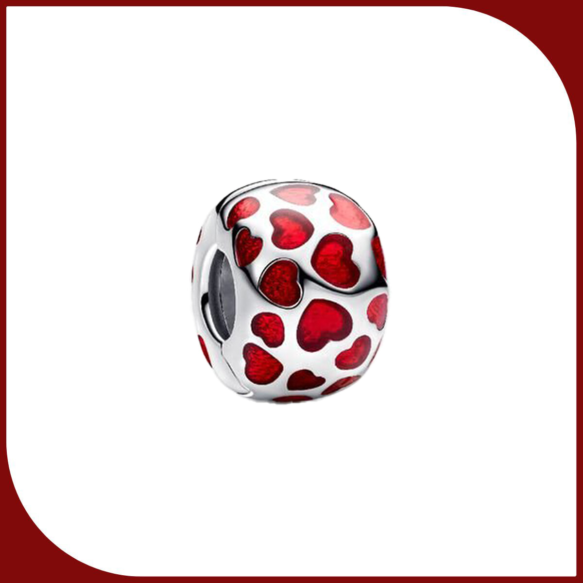 赤いエナメルのカットアウトハートをランダムに配し、小ぶりなサイズながら存在感を放つロマンティックなデザイン。ブレスレットとの組み合わせで表情が変わるチャームは、前向きな気分を引き寄せ自分らしく幸せを添えてくれる。