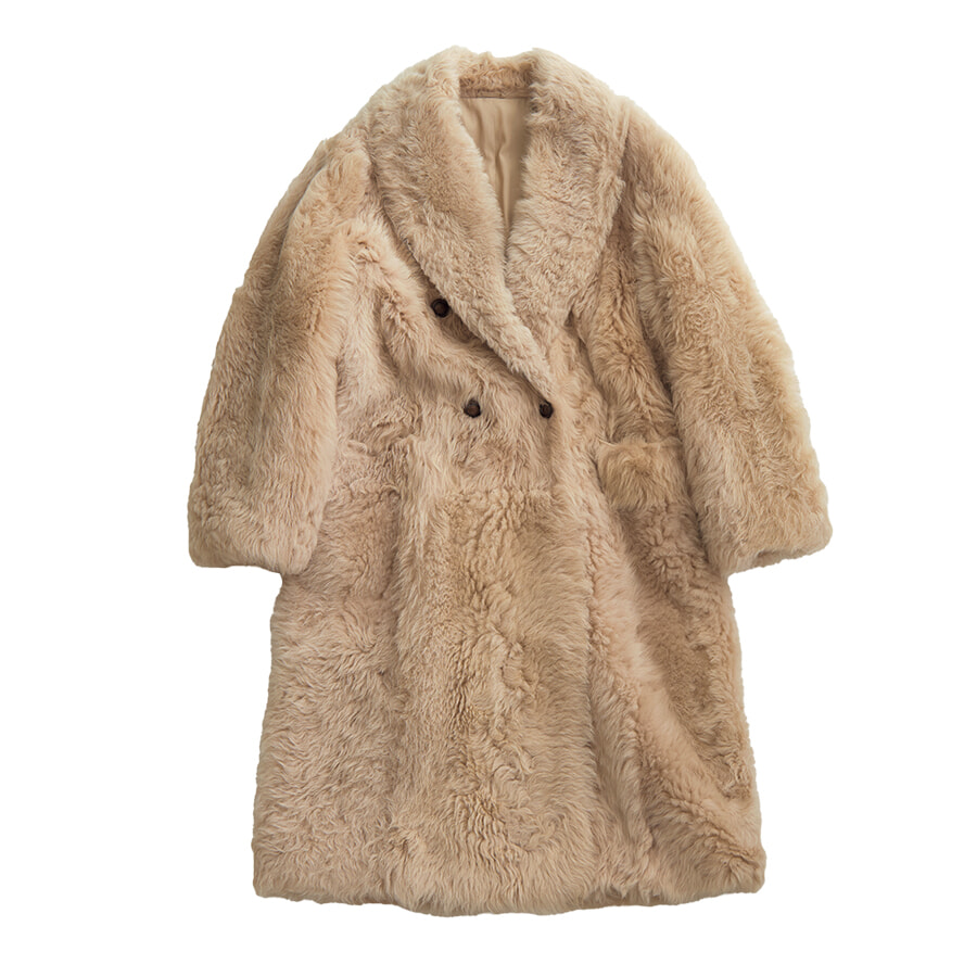 最上級の素材のコートがあればどんな寒さも大丈夫。シェアリングムートン・チェスターコート¥1,961,300/ブルネロ クチネリ(ブルネロ クチネリ ジャパン)