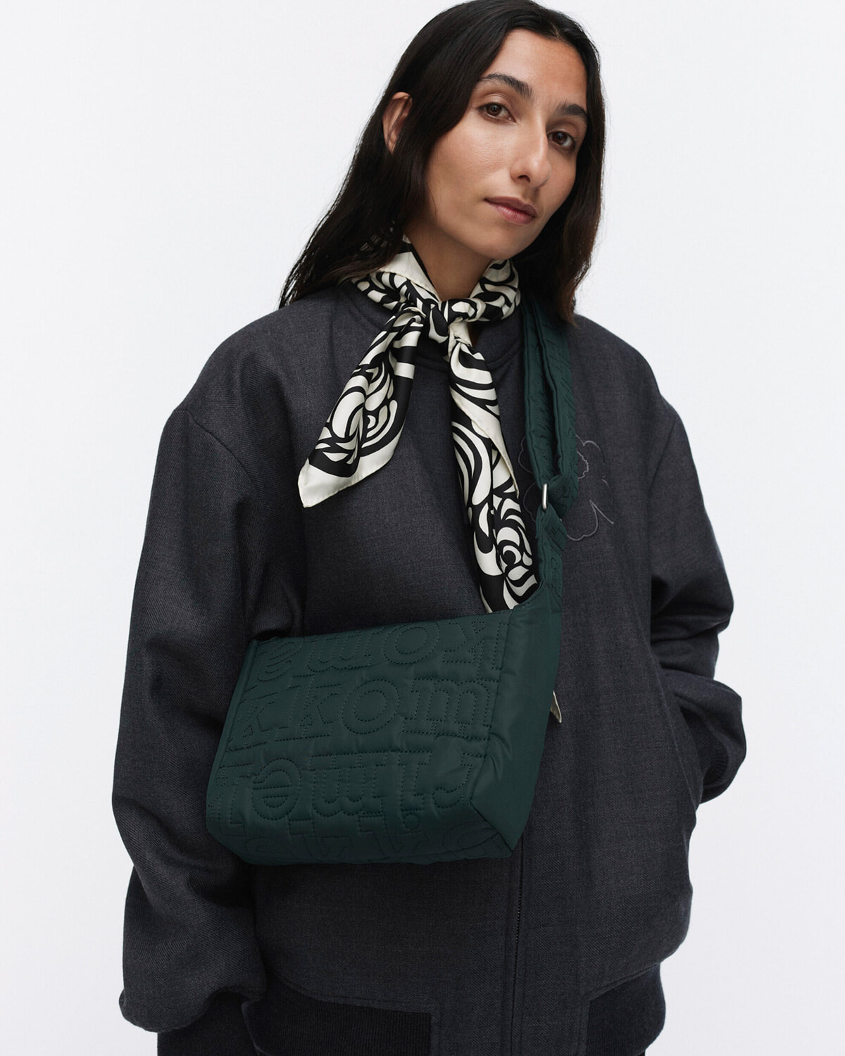 ジョイ バッグは、洗練されたブラックとダークグリーンの生地にキルティングであしらわれた象徴的なマリメッコのロゴパターンが特徴。デザインはロゴを全面にレイアウトしたクロスボディバッグのSとMサイズ、トートバッグのMサイズ、バックパックが揃う。用途に合わせて、お気に入りのデザインとサイズを見つけて。