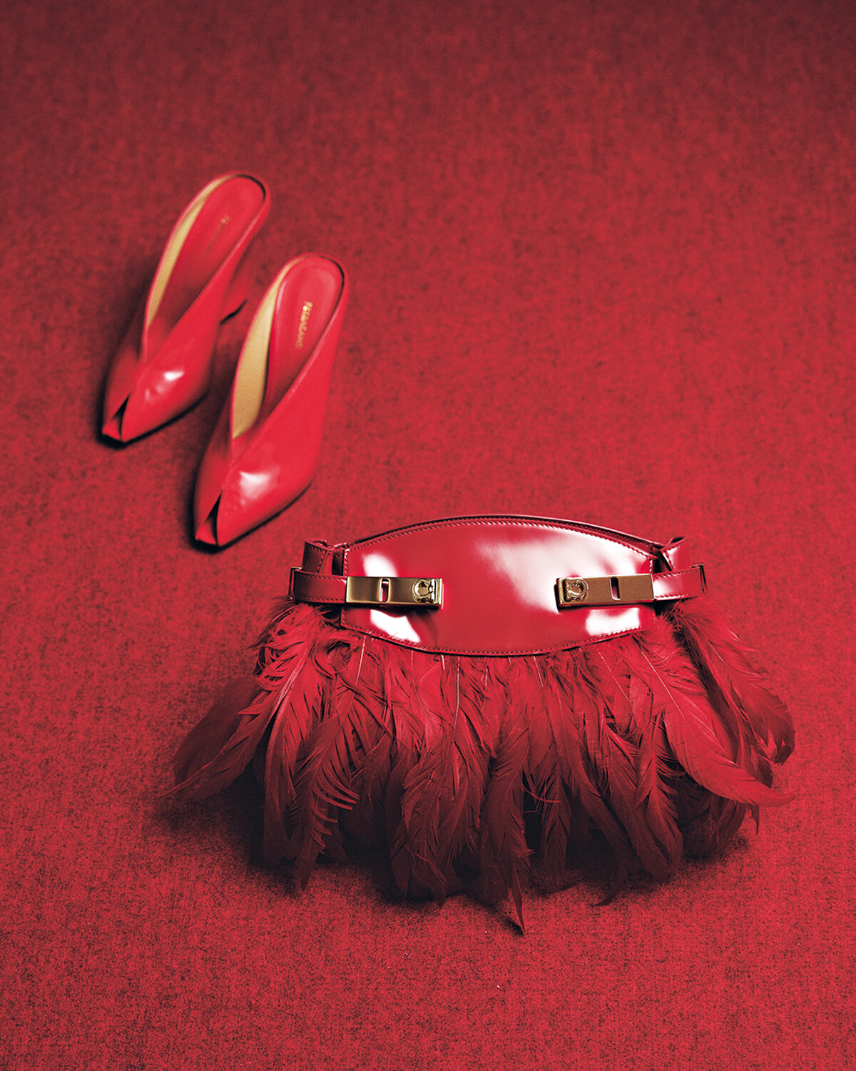 バッグ(H12×W24×D15cm)¥462,000、シューズ(ヒール9.5cm)¥159,500/ともにフェラガモ(フェラガモ・ジャパン)