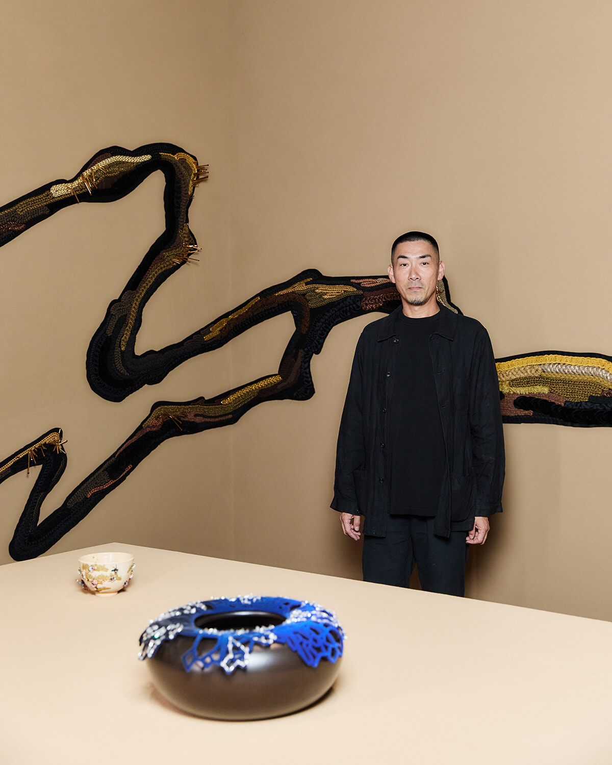 アスカ・ヤマシタ:大きな機会に恵まれて、永楽さんに会いに京都に行くことができました。以前から陶芸に刺繍をしたいという夢を描いていたのですが、ただパーツを貼り付けることはしたくなかった。だから永楽さんに受けて入れていただかなくてはならなかったんです。