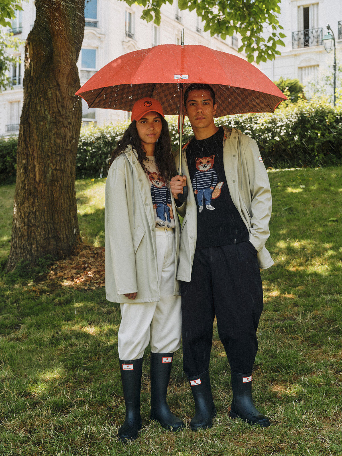 本カプセルコレクションは、メゾン キツネ直営店(阪急メンズ大阪店を除く)とメゾン キツネ公式オンラインストア、ハンター銀座フラッグシップストア、ミント神戸店、ハンター公式オンラインストアにて発売中。冬の雨や雪の日にもおしゃれ心を忘れない人にとって、機能性も抜群のこのカプセルコレクションは、きっと重宝するはず。