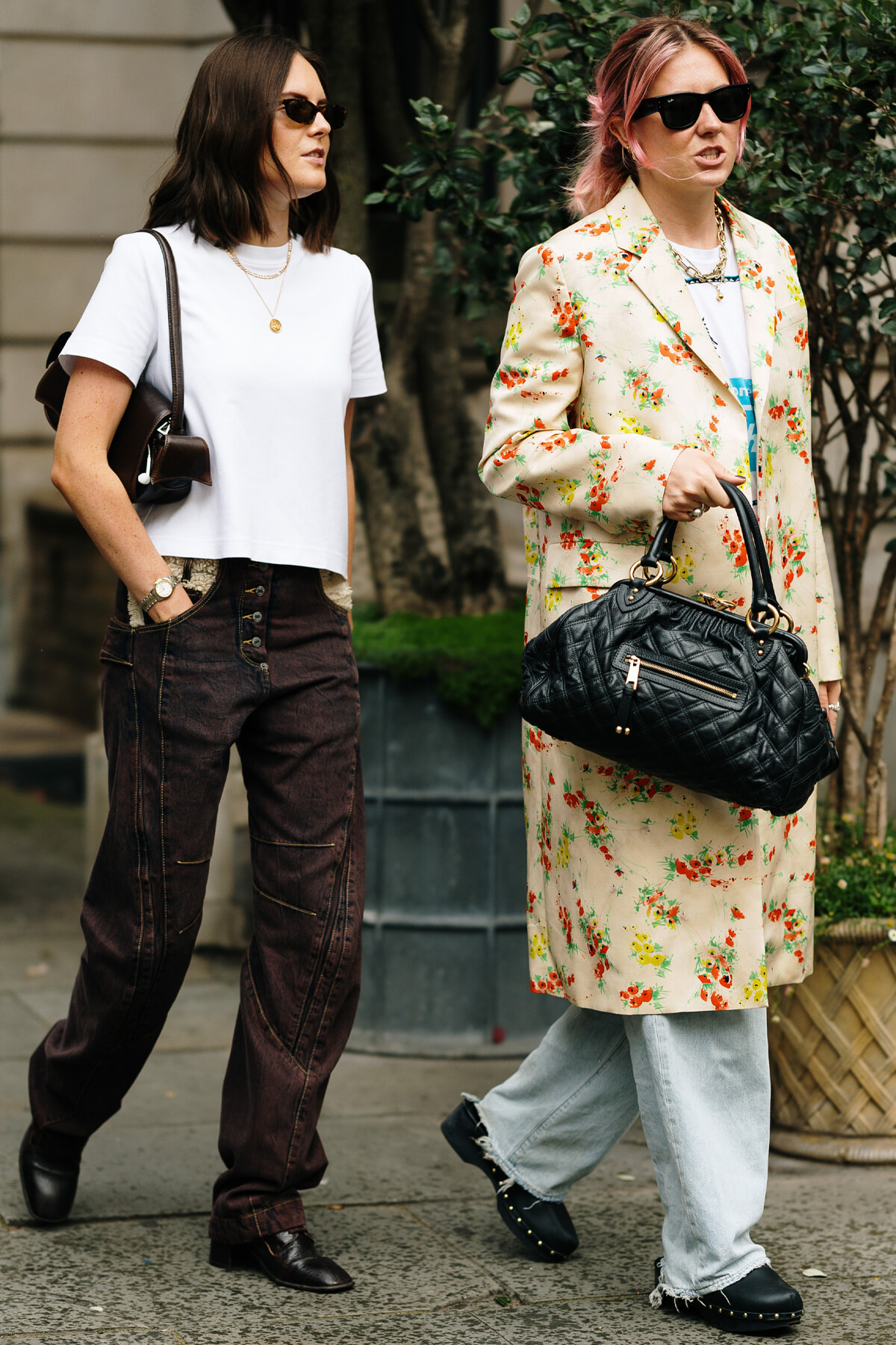 最後もロンドンのストリートにて。注目したいのは、SHOWstudioのエディターだという右の方。ピンクヘアも手伝って、カジュアルスタイルもコートのおかげで一気に華やかに。重衣料は何にでも合いそうなタイプを選んでしまいがちだが、時には柄物に挑戦してスタイリングの主役に据えてみてもいいのかもしれない。
