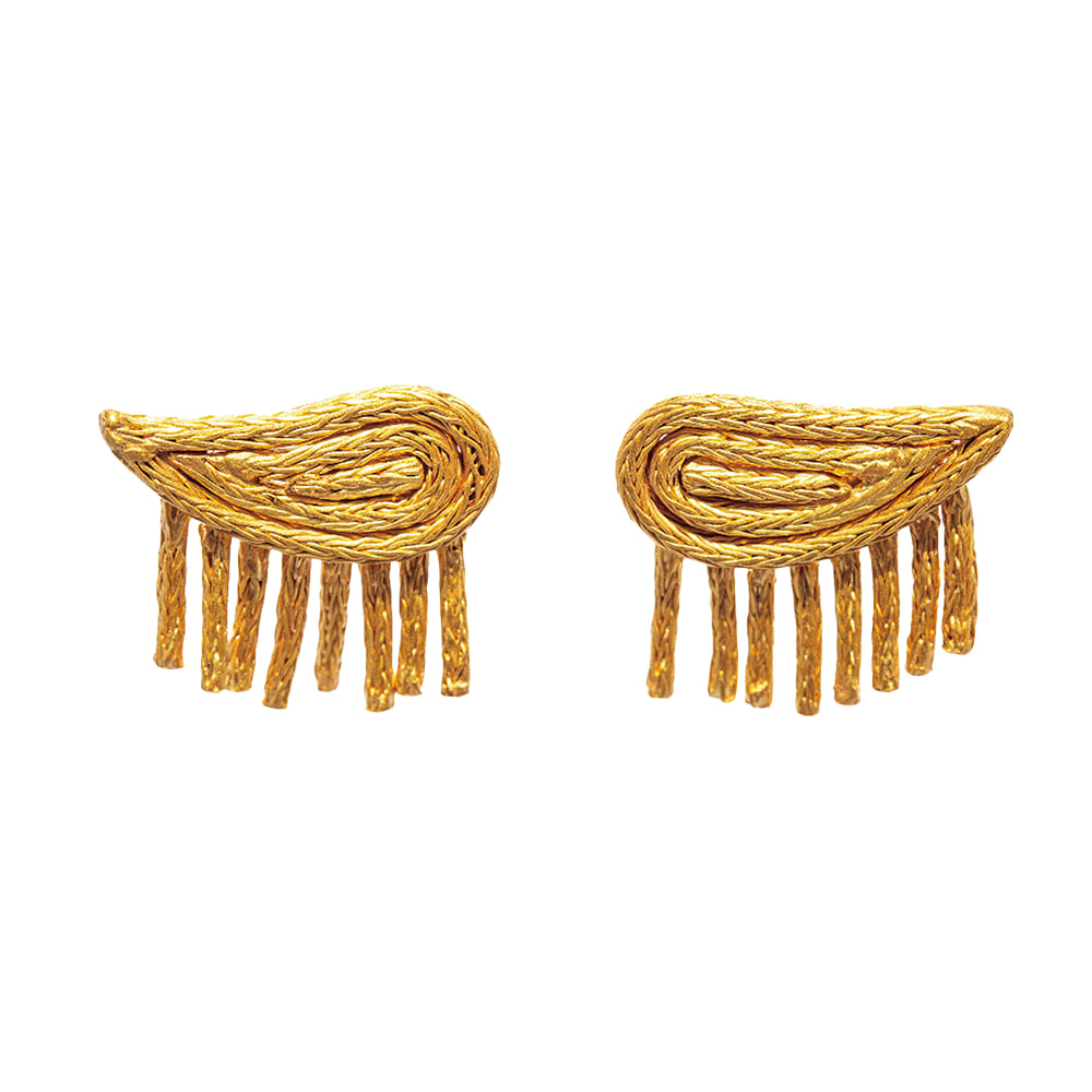 インドの伝統的な職人技で柔らかな18金を編み込んだピアスは、肩飾りのエポレットがモチーフ。