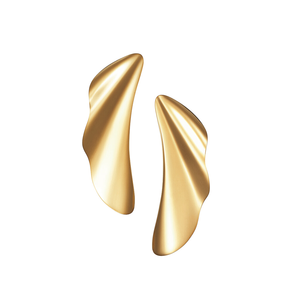 満ち引きを続ける海からインスピレーションを得たピアスは、なめらかに波打つ水面の意匠が見事。