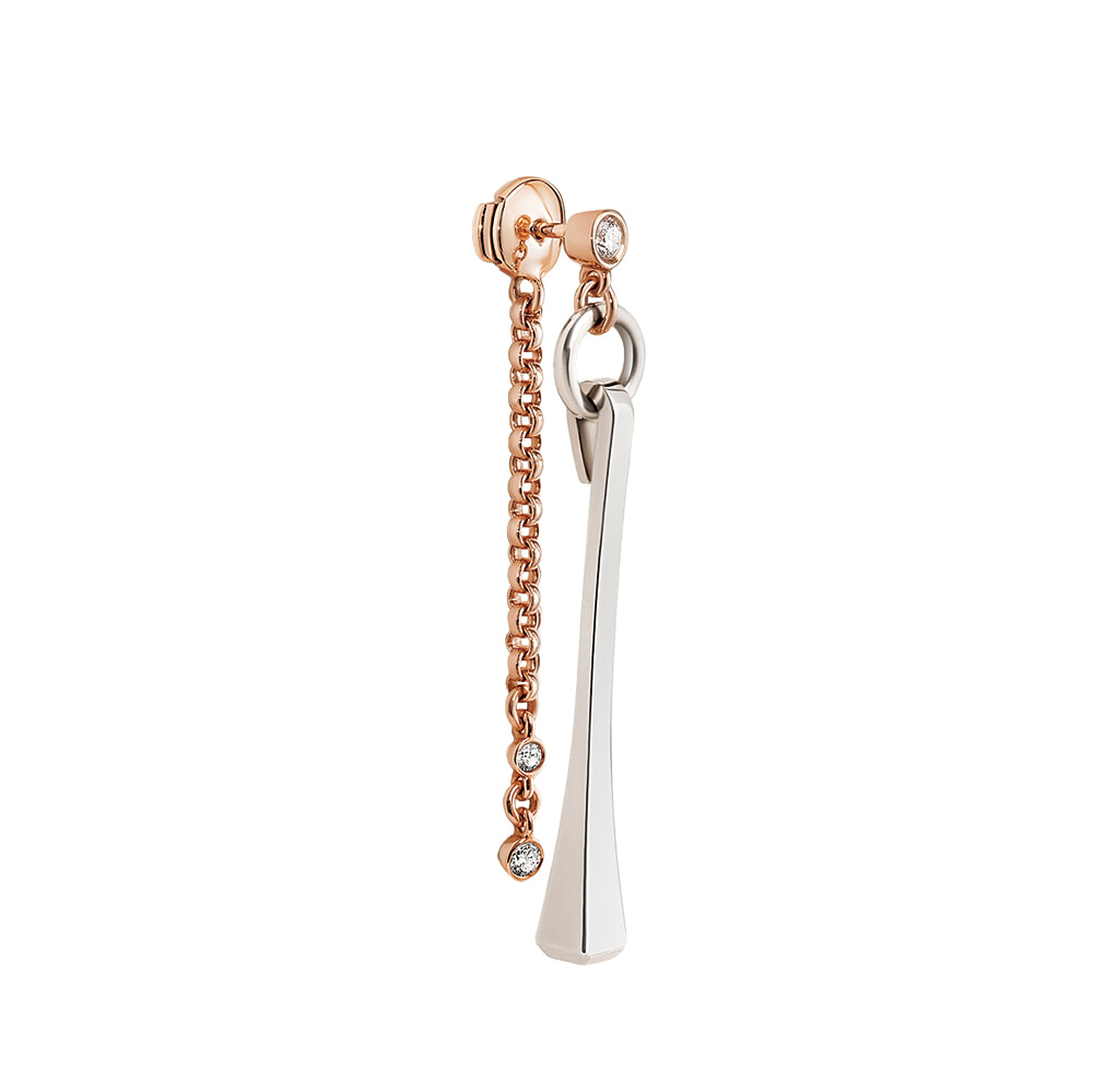 メゾンのシンボルの集大成であるコレクションより、ピンクゴールドの「シェーヌ・ダンクル」のチェーンとシルバーの馬具の蹄鉄釘が印象的なシングルピアス。