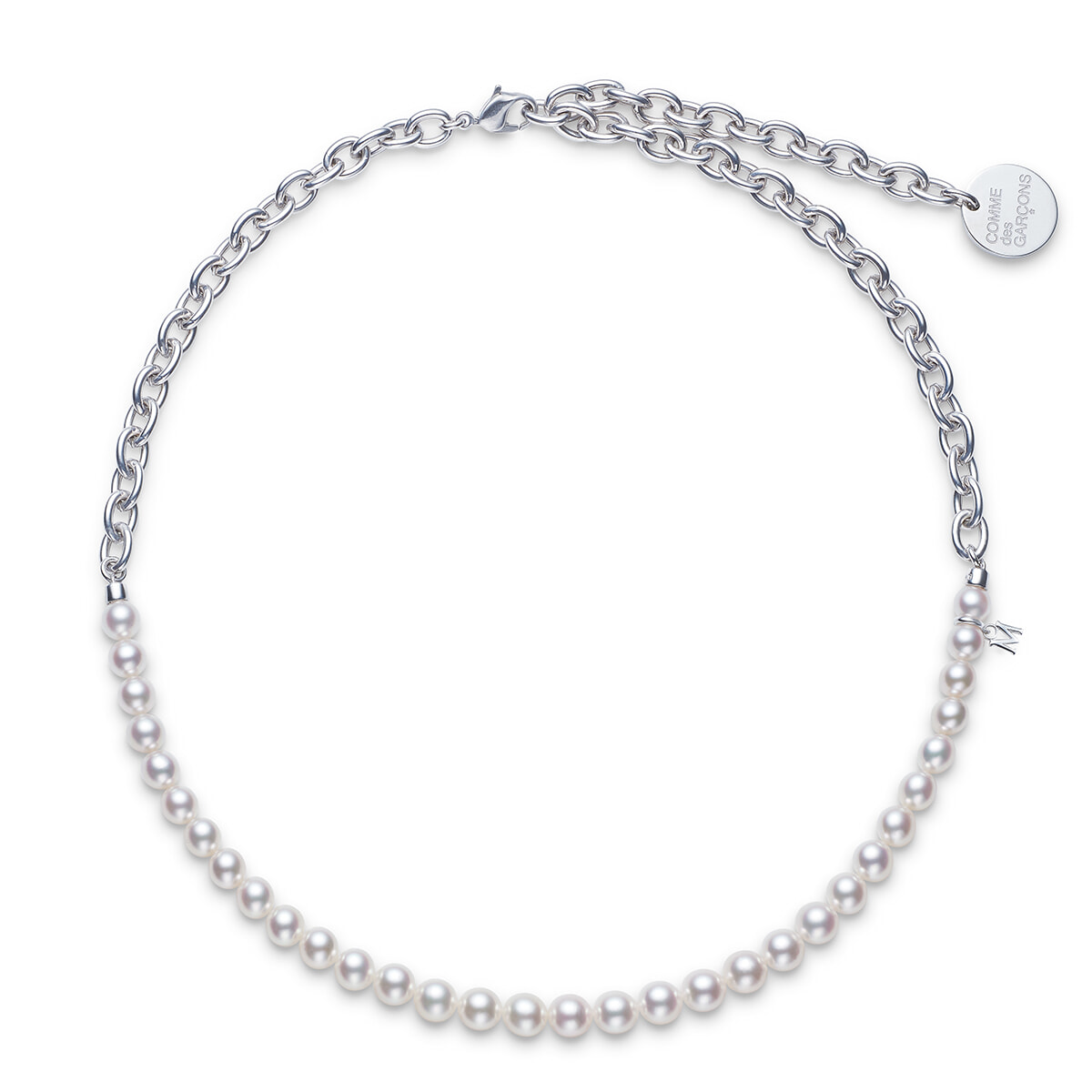 「パールは上品でコンサバティブな印象があり、持っていても、日常的に身に着けることはあまりありませんでした。ですが、ミキモト×コム デ ギャルソンのネックレスはチェーンとの組み合わせがモードな雰囲気を生み出していて、とても気に入っています。最近はニットに合わせることが多いです」。
