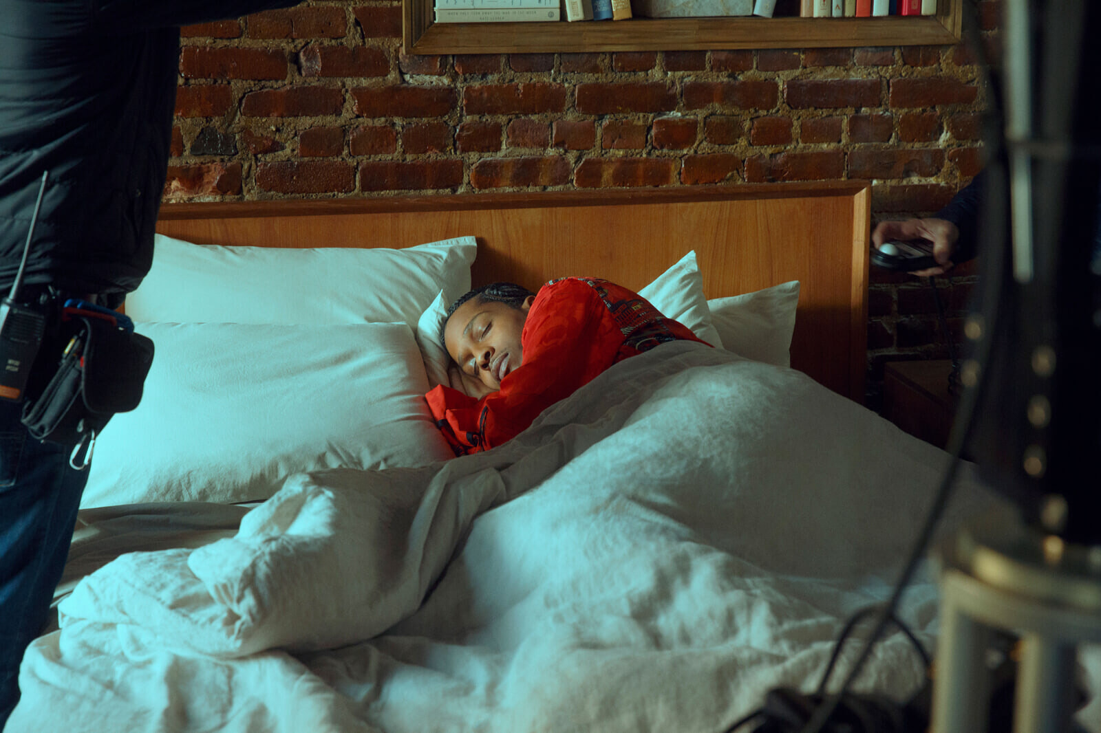 作中で、マーガレット・クアリーは2025/26年 メティエダール コレクションより、テクスチャードツイードのジャケットとウールパンツ、ハイヒールのメリージェーンを着用。エイサップ・ロッキーは同じく2025/26年 メティエダール コレクションのシルクパジャマとダービーシューズを着用。走り、踊り、愛を謳歌する二人のストーリーをぜひチェックして。