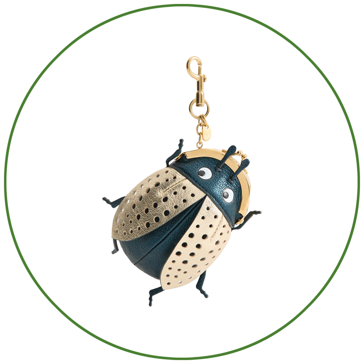 柔らかく耐久性のあるゴートレザーを用いたキャッチーなバグモチーフのコインパースチャーム。触覚や脚、カットアウトしたメタリックな羽根など、細部にまでこだわったその姿は幸運をも迎え込みそう。