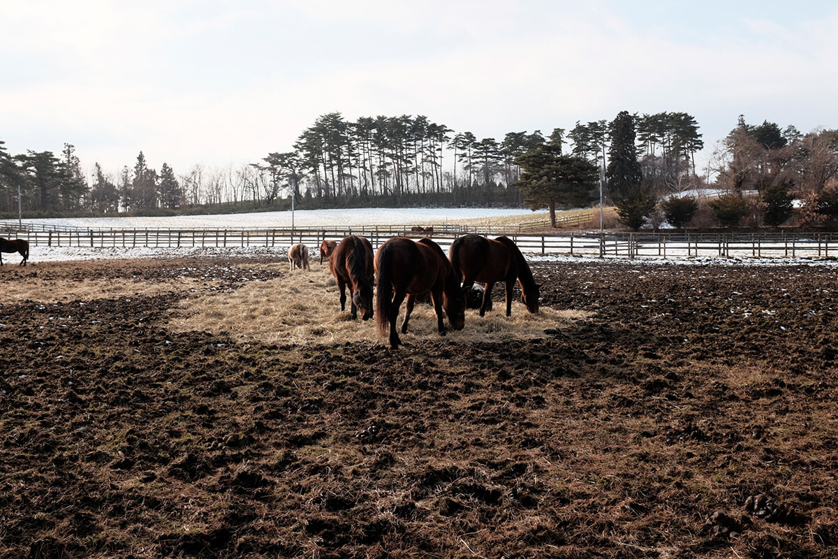 五戸町の馬牧場。次世代に馬を残すため、多くの馬種を育てている。(写真提供:GOBU)