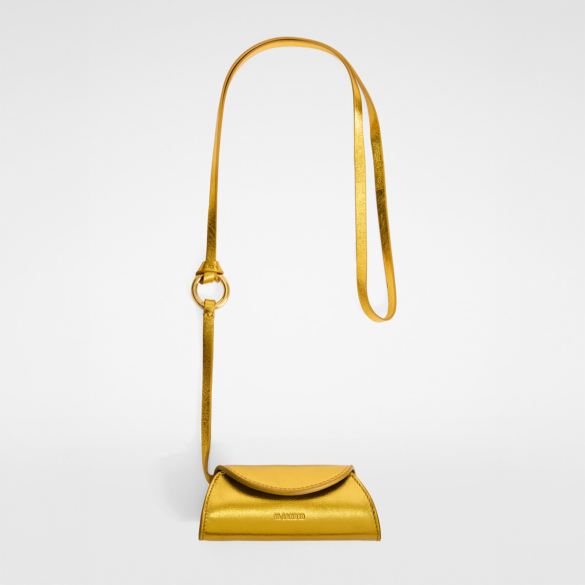 鮮やかなゴールドが目を引くリップスティックケース(H4×W11.5×D3cm)¥93,500/ジルサンダージャパン