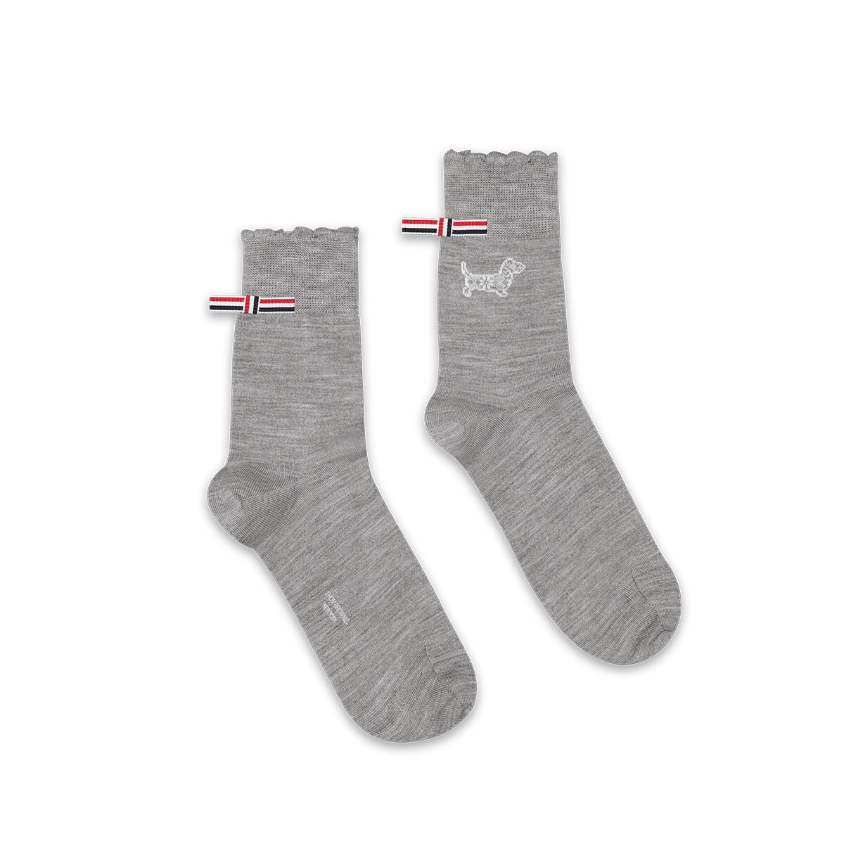 リボンとヘクターのワンポイントがアクセントになったソックス¥29,700/トム ブラウン 青山