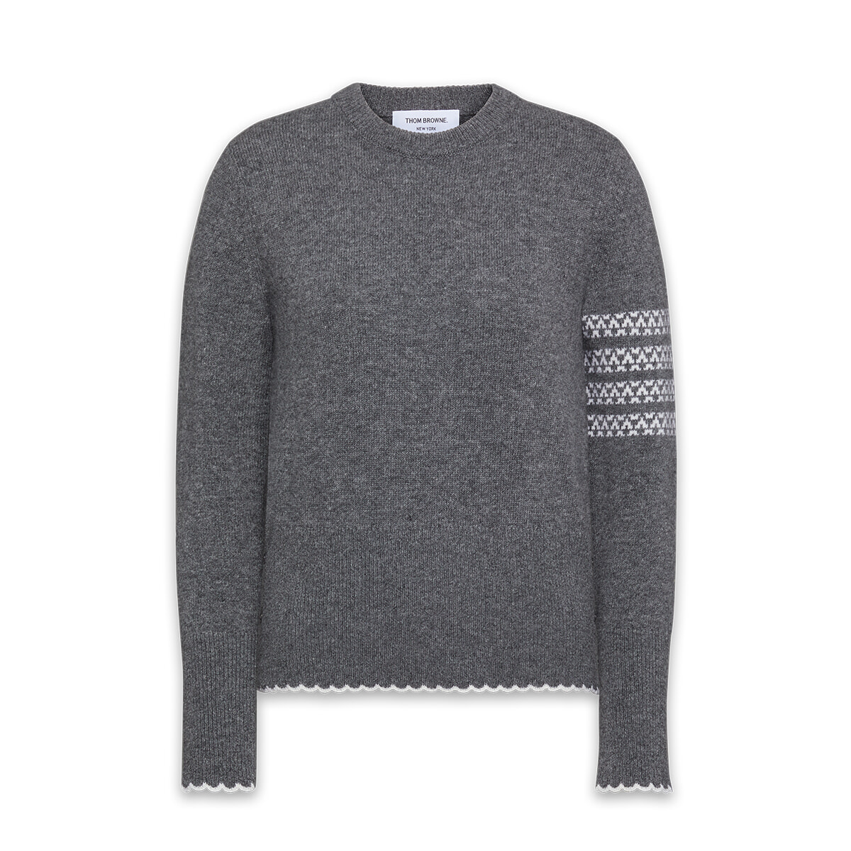 ヘムのディテールや片袖に入った柄使いでさりげなくフェミニンな上質ニット¥260,700/トム ブラウン 青山