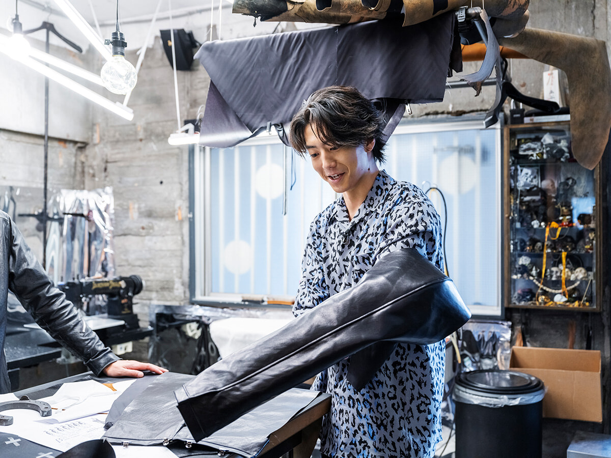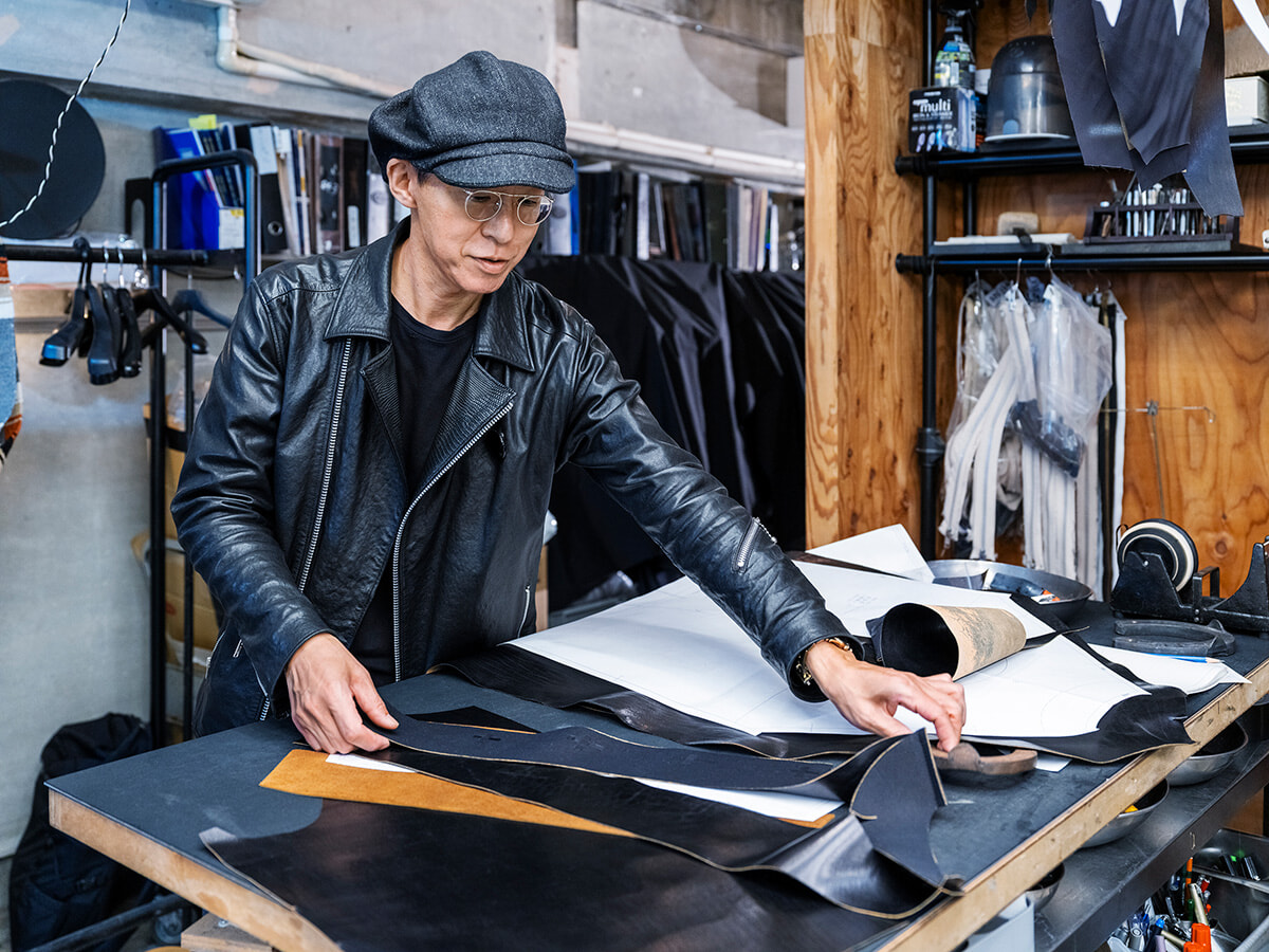 伊藤健太郎さんがデザインするレザージャケットづくりが進行中! 仕立てを担うアトリエには、レザーと職人技が織りなす奥深い世界が広がっていた。