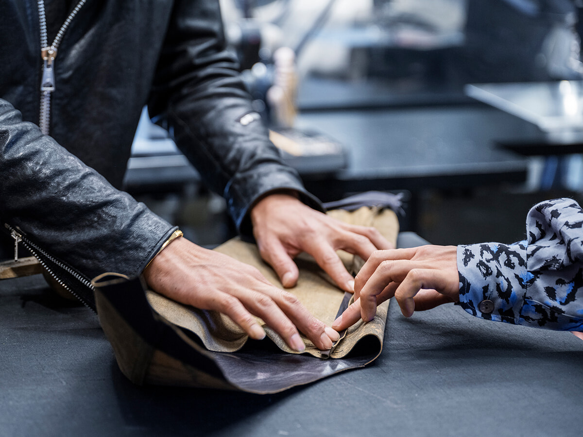 国内4大皮革産地のひとつである姫路にも拠点を持つノーノーイエス。姫路のほか、コレクションのために海外にも足を運ぶという橋本さんは、日本の革の魅力について「触れたときのやわらかさと、肌に吸い付くような質感」と表現する。