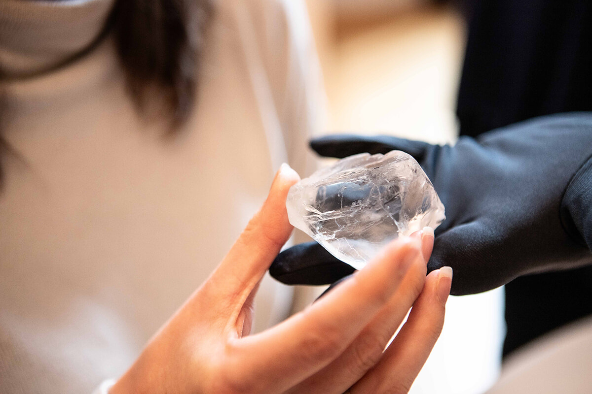 「レソト レジェンド:ダイヤモンド原石からハイジュエリーコレクションへ」では、レプリカで原石の大きさを実感。© Pauline de Courrèges