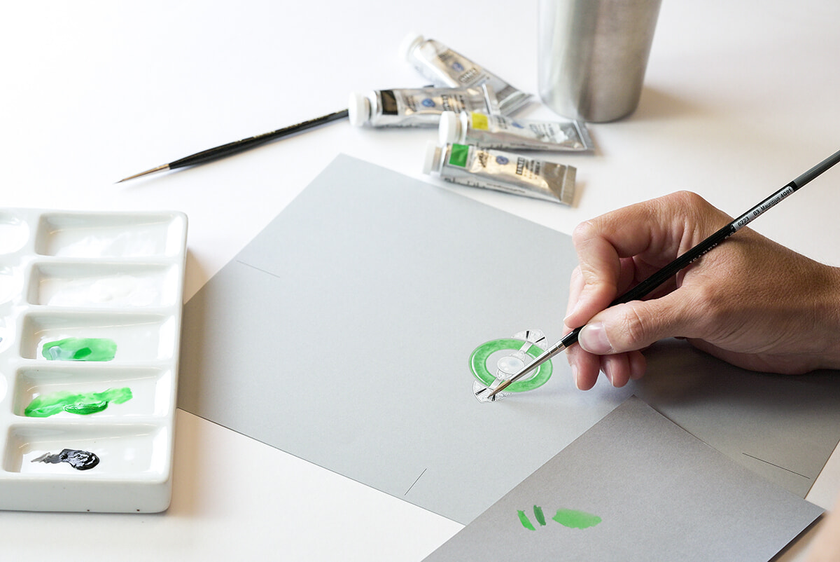 新講座「ハイジュエリーのグアッシュ3:素材」では実際に筆を取って素材の違いを描き分ける。© L’École des Arts Joailliers – Photo Laurent Kariv