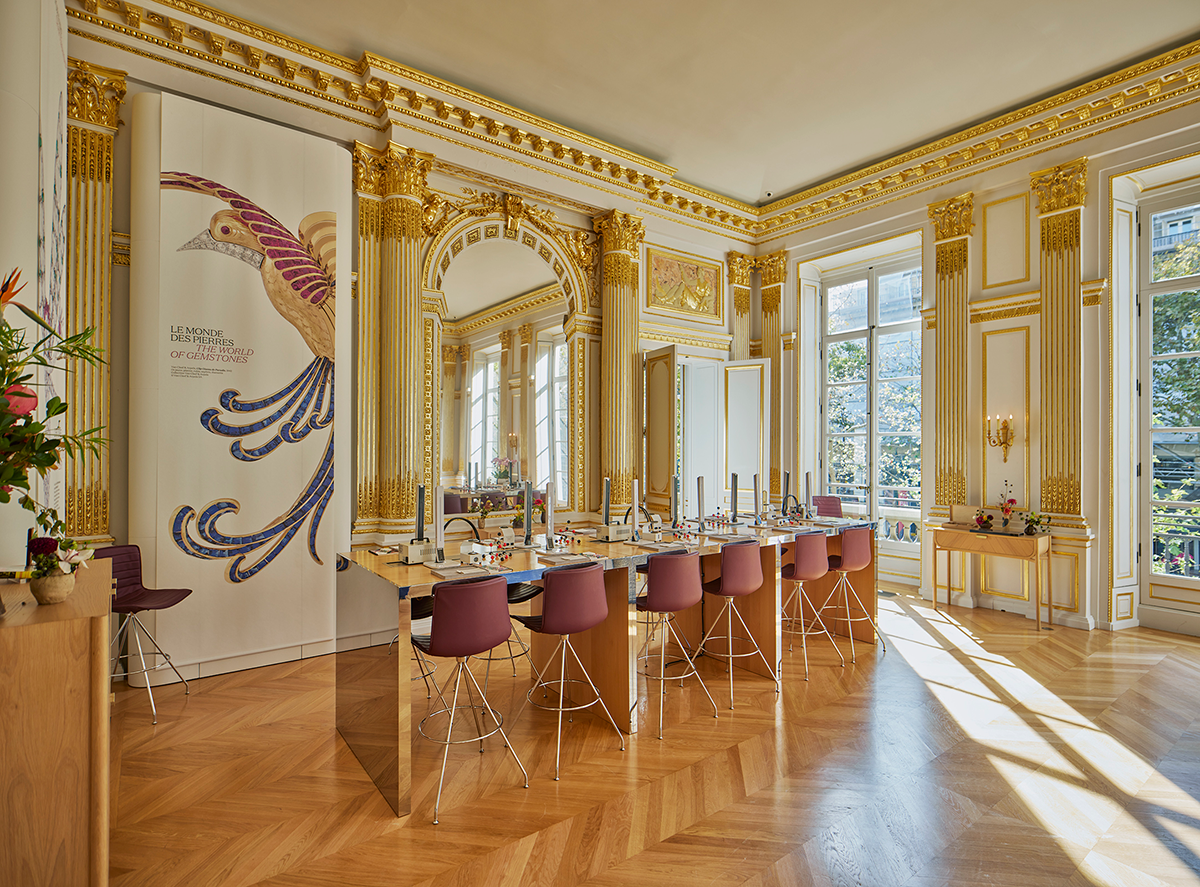 レコールのあるメルシー=アルジャントー邸は、グランブールヴァールの大通りに面した数少ない18世紀の私邸で、その一部は歴史的建造物に指定されている。19世紀に加えられた大広間は現在企画展のメイン展示室。また、講義室であるルイ16世スタイルのサロンや大階段が往時の姿を忍ばせる。歴史建造物の中で学ぶジュエリーの物語と、宝飾を巡る異色の展覧会と専門書店。日本での特別講座を待つ間、パリのレコールに足を運んでみてはいかがだろうか。