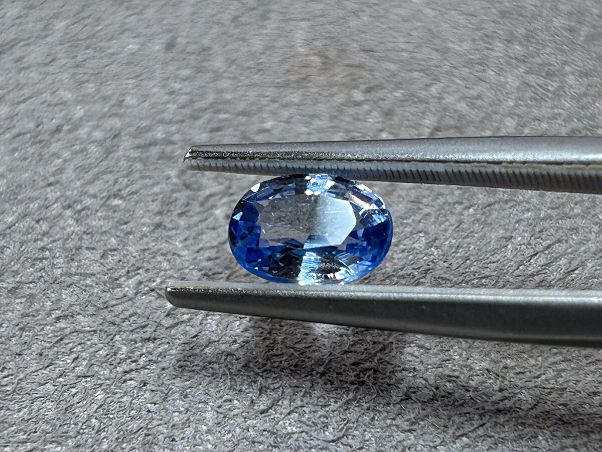 「原石の世界」より。実際にカットされたサファイアを手に、色や透明度、インクルージョンを観察。photography: Masae Takata