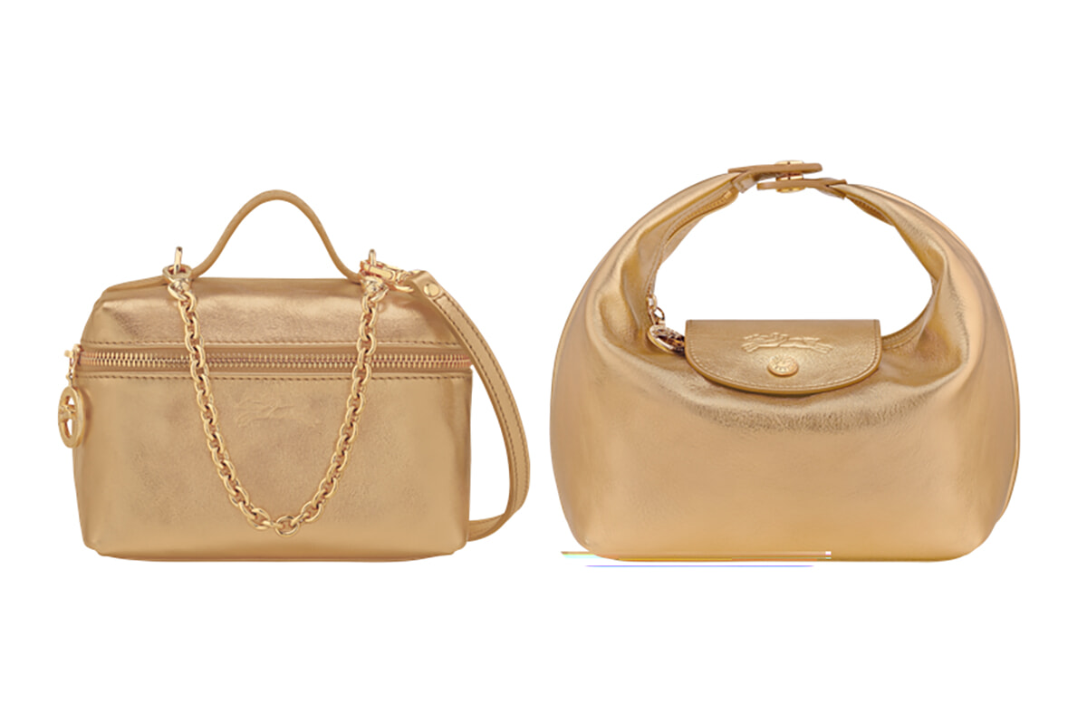 「ル プリアージュ® エクストラ ゴールド」クロスボディバッグ(H10×W16×D11cm)¥70,400、トップハンドルバッグ(H18×W18×D12cm)¥70,400/ともにロンシャン(ロンシャン・ジャパン)