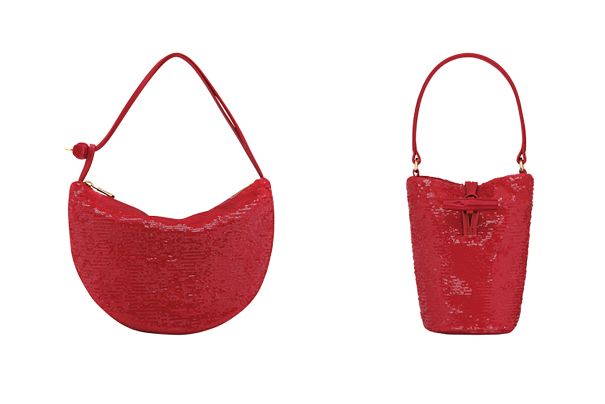 夜の装いの煌めきとなるのは、ゴールドやレッド。「ル プリアージュ® エクストラ ゴールド」は、バッグのレトロシックな雰囲気とメタリックな輝きが、ナイトアウトのスタイルをスタリッシュに演出。レッドのトーンオントーンのバンブートグルが艶やかな「ル ロゾ スパークリング」は、丁寧にあしらわれた無数のスパンコールがエレガンスを漂わせる一品に。また、キャメルのファーにゴールドのバンブーが愛らしい「ル ロゾ シアリング」や、「ル ロゾ」の新モデルにクラッチもお目見え。