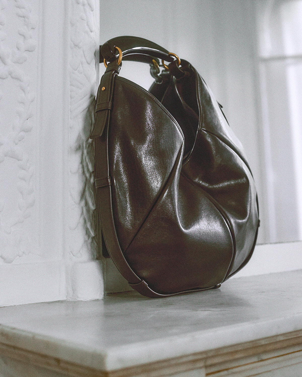 2026年春、伝説のバッグ「モンバサ」が現代にカムバック。2000年代に誕生したアイコンを、アンソニー・ヴァカレロがモダンに再解釈。ムーンシェイプの柔らかな曲線と艶やかなレザー、動物の角を象ったハンドルが、フェミニンとマスキュリンの二面性を美しく体現する。