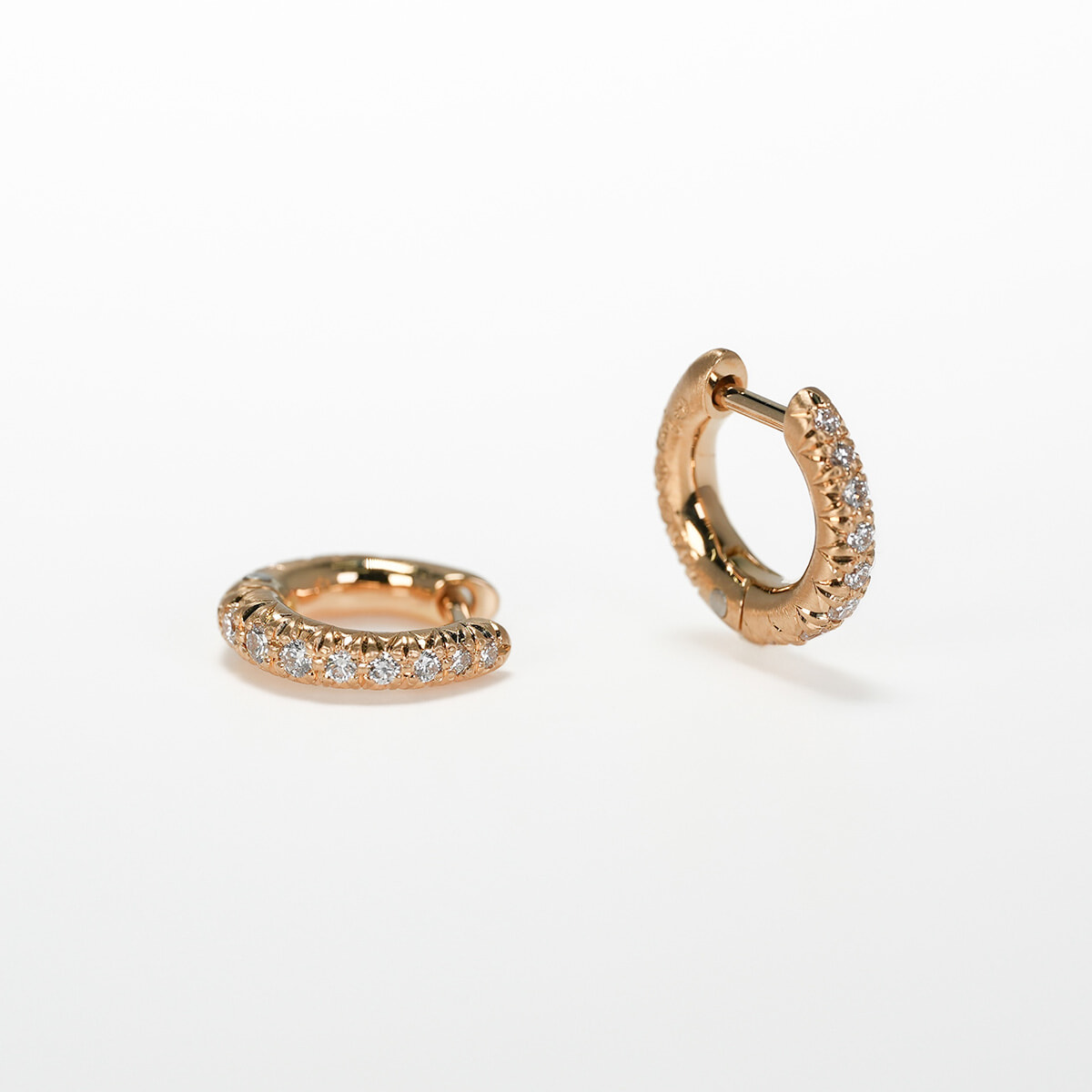 職人の手仕事にこだわり丁寧に作られたシンプルで上品なダイヤモンドピアス。上品で飽きのこない小ぶりなフープタイプ。「ハムエタ クラシック ピアス」(K18YG×ホワイトダイヤモンド)¥281,600 /ハム
