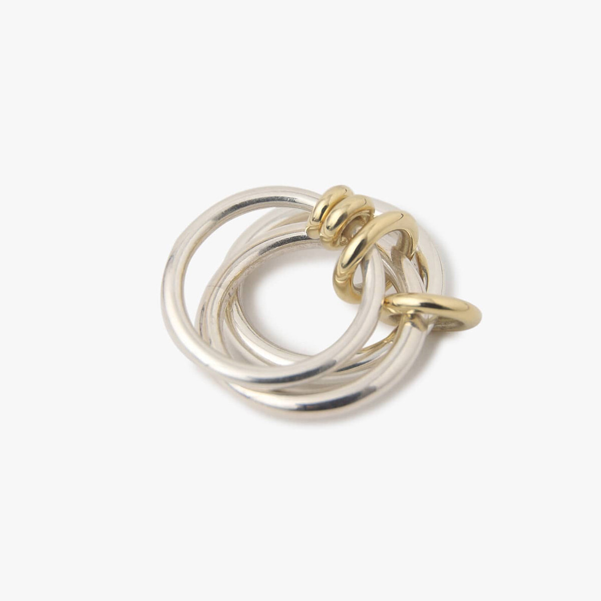 ロサンゼルスのファインジュエリーブランド。定番の3連リングをイエローゴールドのフープで繋げたコンビカラーリング。「ラネス SG リング」(SL925×18K)¥242,000/スピネリキルコリン(ロンハーマン)