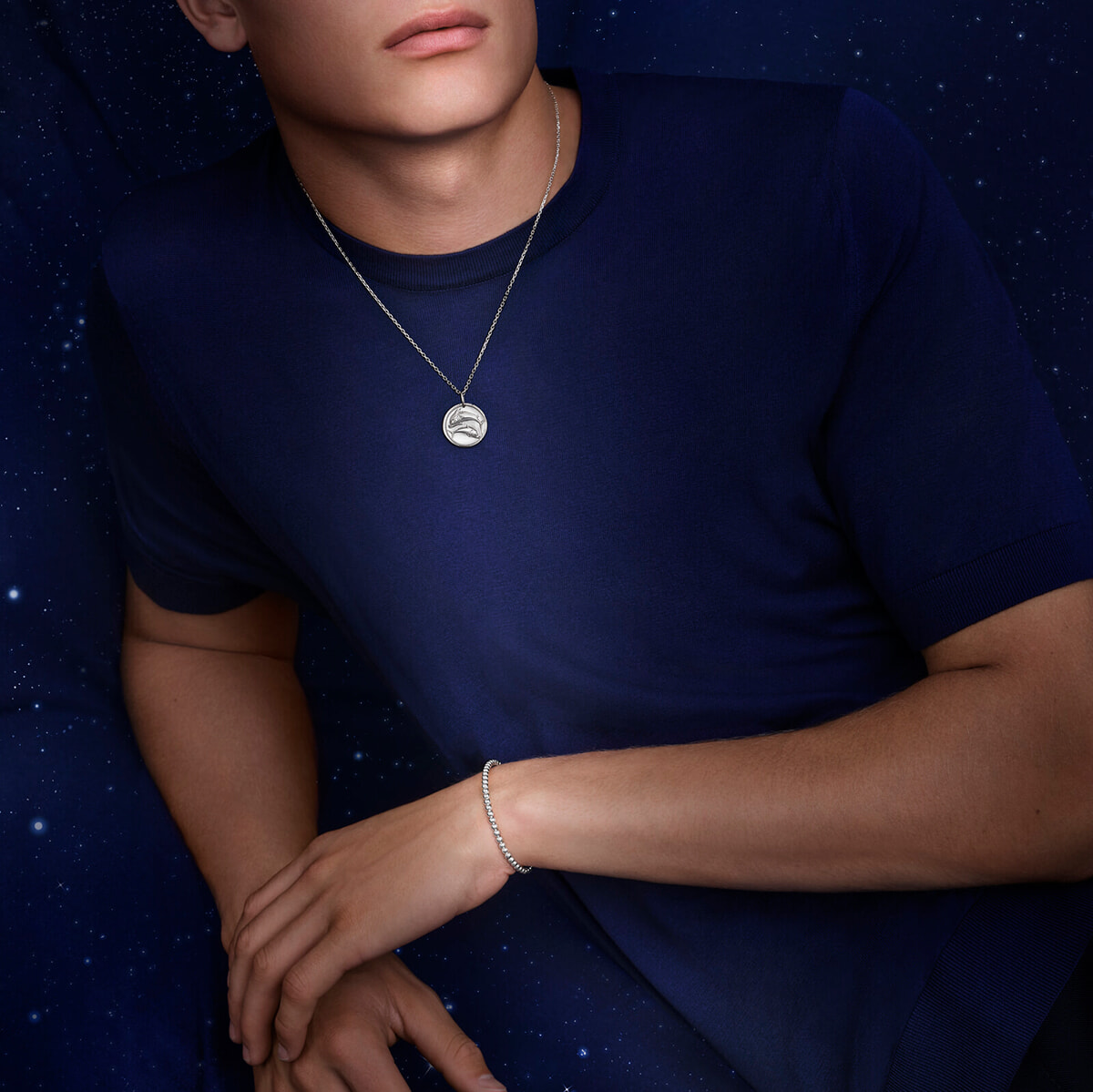 今回はこのブレスレットに加え、ホワイトゴールドのメダルとともに、ペンダントとして着用できる50cmのショートチェーン、70cmのロングチェーンが登場。さまざまなスタイルやシーンに合わせて、多彩なコーディネートを叶えてくれるのが魅力だ。自身の星座をあしらったジュエリーを身につけて、幸運を引き寄せたい。