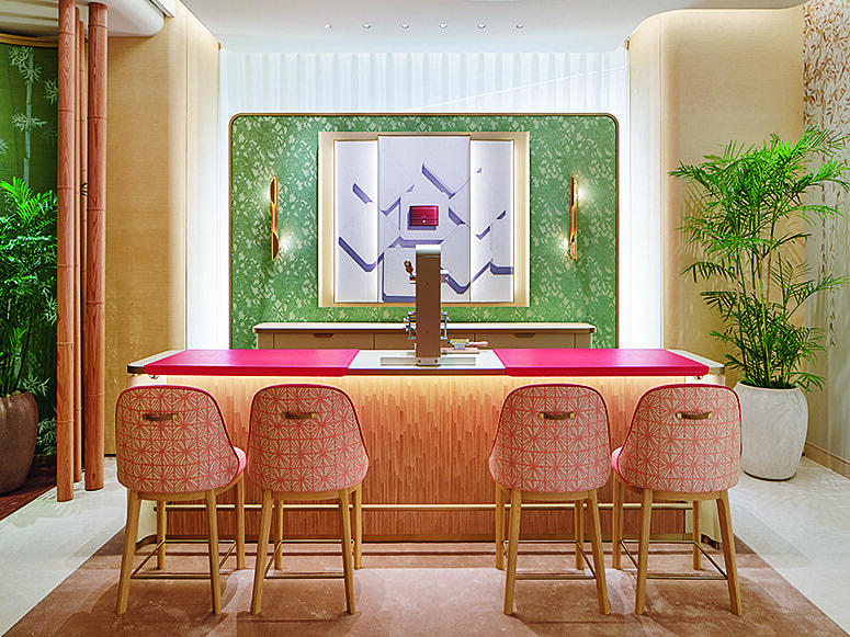 華麗なスタイルが主流だった20世紀初頭の幾何学的なジュエリーを発表するなど、いつの時代も革新的なスタイルを提唱してきたカルティエ。そんなメゾンに息づくモダニティと卓越した職人技に日本の美意識を融合させだのが本ブティックだ。日本人アーティストによる作品や、折り紙といった伝統文化にインスパイアされたデコレーションが随所に配されている。