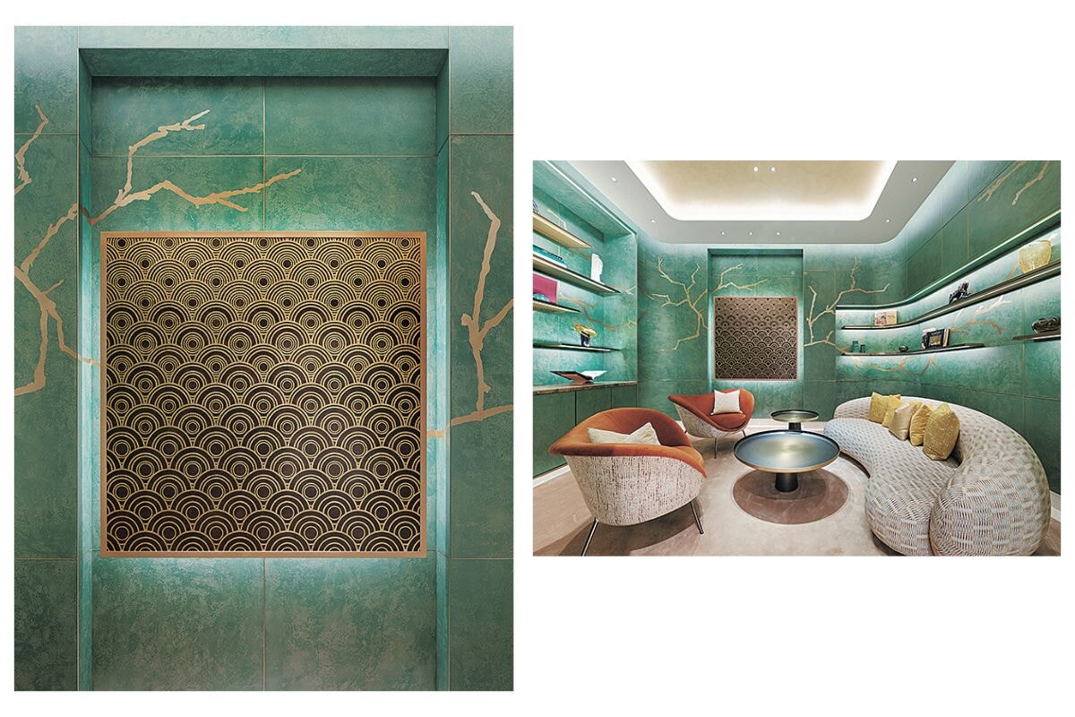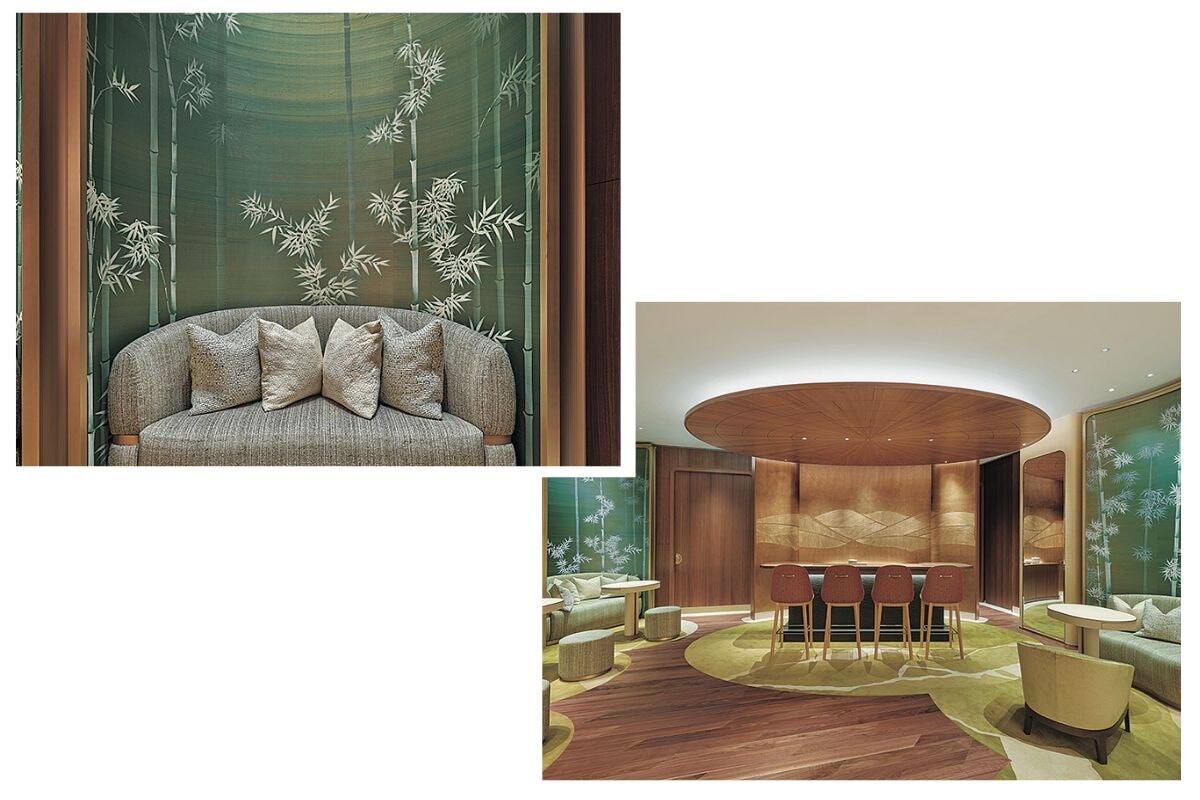 ゲストの五感を満たす場所として設けられた3階の「ジャルダン」。その名のとおり、竹林を思わせるみずみずしいグリーンで彩られた空間は、ウェイティングスペースにとどまらず幻想的なメゾンの世界に浸れるリラクシングなスポット。