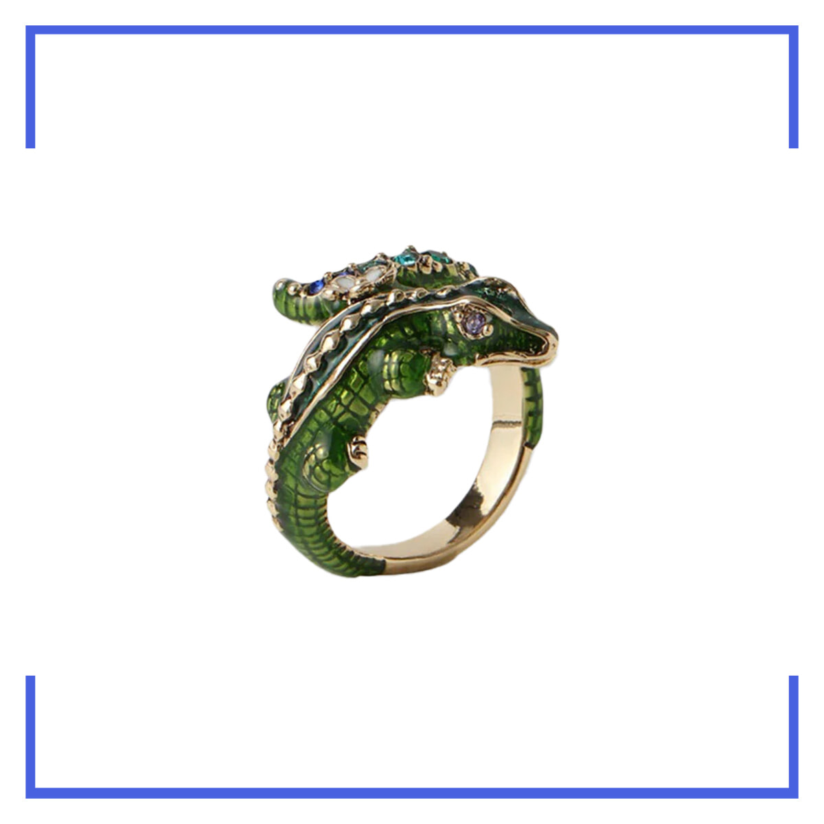 豊穣や実りのシンボルとされるワニモチーフを、ブランドならではの鮮やかなカラーと立体感で繊細に表現。随所にあしらったカラーガラスの輝きに導かれ、幸運が舞い込んできそう。