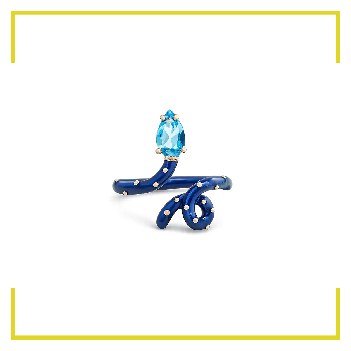 しなやかな曲線にカラーストーンを合わせた、アイコニックなリングにドットパターンが仲間入り。キャッチーなデザインと、遊び心のあるカラーが開運を引き寄せてくれそう。