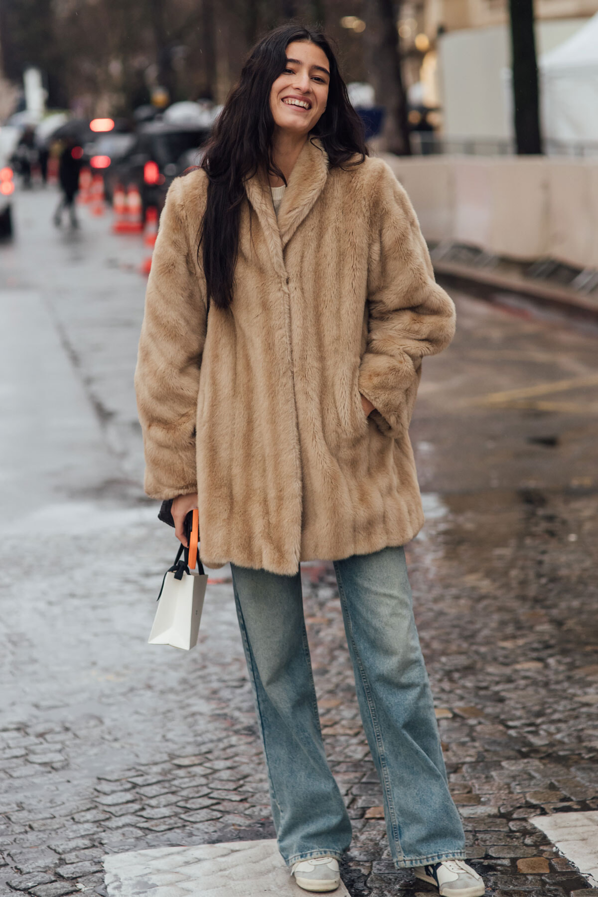 最後はシャネルのオートクチュール コレクションのショーに出ていたモデル。色褪せたジーンズ+スニーカーを合わせていて、首元からちらりと白を見せている。肩の力を抜いてファーを着るお手本。